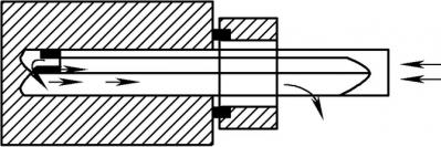 槍鉆(見圖1)的鉆柄是空的,由內外部供應的切削液流經鉆頭內輸送管,并強行流經切削頭內的孔。鉆柄外側有一個沿著長度方向的V形槽,切削液攜帶切屑通過此V形槽,并經過鉆頭外側,最終切屑從孔中排出。槍鉆可應用于普通加工中心,但是需要高壓力的切削液。