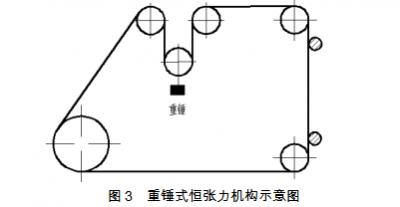 同時為了控制鉬絲的松緊程度,可給鉬絲加裝恒張力裝置來保證鉬絲在運(yùn)行過程中始終具有合適的張力,保證鉬絲始終緊貼在導(dǎo)輪上,如圖3所示。