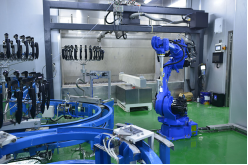 新力光(展位號:E4-B01)帶來的涂裝生產(chǎn)線可柔性生產(chǎn),即能進行汽車塑膠外殼的噴涂生產(chǎn),也可進行與汽車塑膠外殼大小相近、油漆工藝相同的塑膠飾件的噴涂生產(chǎn),目前噴涂產(chǎn)品是汽車門把手及后視鏡。新力光在設(shè)計時,就以安全、節(jié)能、環(huán)保、經(jīng)濟、可靠為原則,以布局合理、參觀性好、操作性強、物流順暢、維護方便為目標,最后選定了采用機械手噴涂模式。