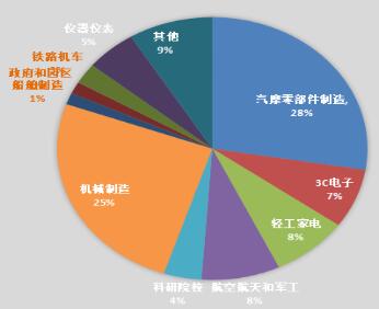 參觀展會的行業(yè)企業(yè)中,來自汽車(摩托車)零部件制造及整車類別企業(yè)最多,占到達到3成;其次為機械制造、國防軍工、輕工家電、3C電子等。
