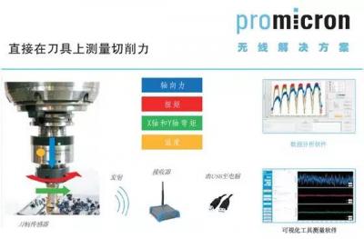 德國pro-micron公司是一家專注于工業(yè)無線解決方案的公司,SPIKE是其無線動態(tài)切削力測量系統(tǒng)產(chǎn)品(圖31),它創(chuàng)新性地將傳感器安裝于刀柄上,直接在加工過程中將測量的動態(tài)切削力(軸向力,扭矩和彎矩)數(shù)據(jù)無線實時地傳輸?shù)诫娔X,獨一無二地用更敏感的彎矩作為切削力主要指標,并用專利的極坐標圖形來表現(xiàn)彎矩的實時變化,可以直觀看到每個切削刃的實時狀態(tài)。
