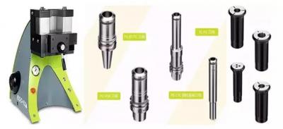 由于PG夾頭帶有1:100微小錐度,不借助工具我們無法將夾頭完全轉(zhuǎn)入刀柄,因此瑞格費克斯推薦用冷壓刀柄自動裝夾單元(圖4左),將手工初步套入的帶有刀具的夾頭和刀柄一同放入自動裝夾單元,由自動裝夾單元使用約15.5MPa(155Bar)的壓力負責將夾頭壓入刀柄。