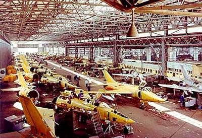 總裝車間正在裝配的強(qiáng)5飛機(jī)