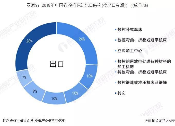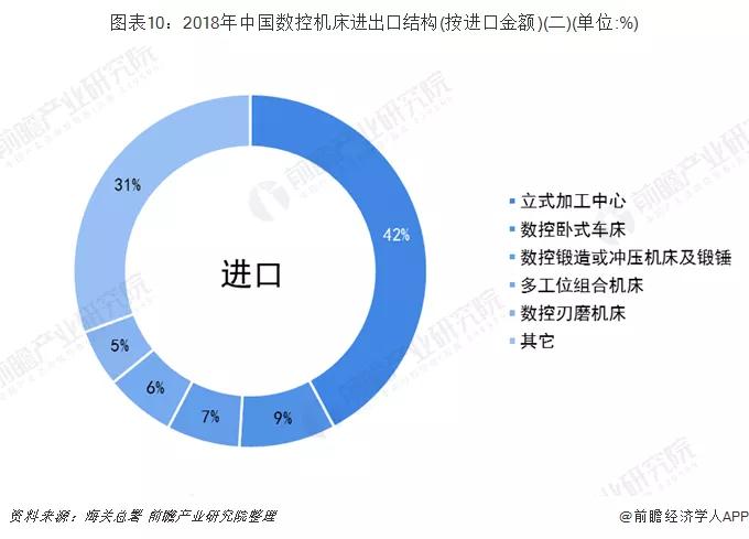 從出口結(jié)構(gòu)上來看,我國數(shù)控臥式車床占我國總出口的26%;從進口結(jié)構(gòu)上來看,我國立式加工中心占我國總出口的42%。