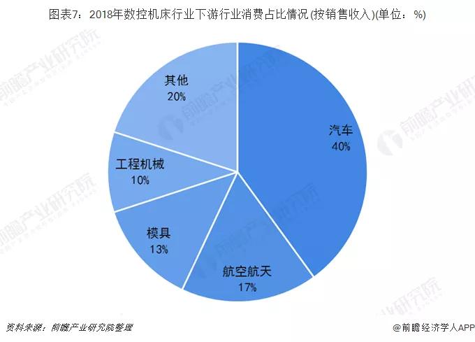 2018年,數(shù)控機床行業(yè)下游行業(yè)消費占比中,汽車行業(yè)比重最大占比約為40%,航空航天位居第二,占比約17%,二者約占我國下游行業(yè)總消費的50%左右。