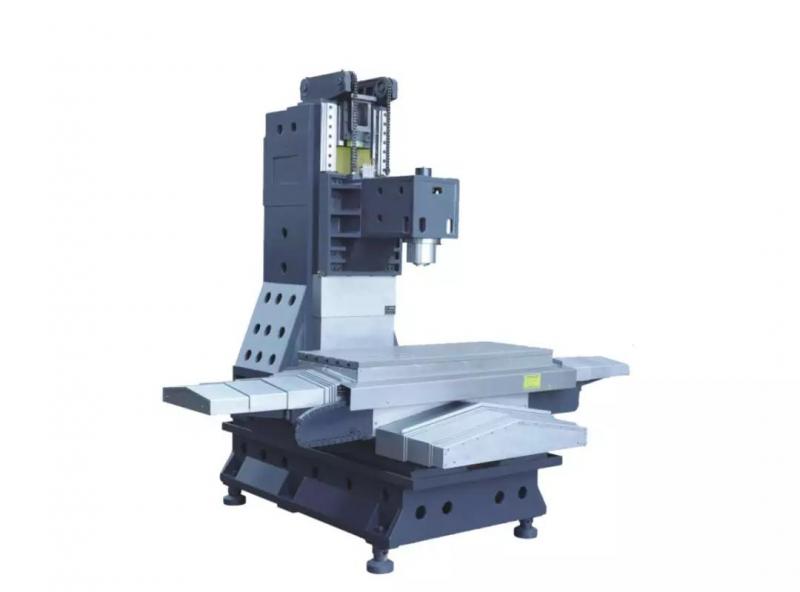 與立式加工中心相比較,臥式加工中心結(jié)構(gòu)復(fù)雜,占地面積大,價(jià)格也較高,而且臥式加工中心在加工時(shí)不便觀察,零件裝夾和測量時(shí)不方便,但加工時(shí)排屑容易,對(duì)加工有利。 1、固定立柱型 1)工作臺(tái)十字運(yùn)動(dòng),工作臺(tái)作X、Z向運(yùn)動(dòng),主軸箱作Y向運(yùn)動(dòng),主軸箱在立柱上有正掛、側(cè)掛兩種形式。適用于中型復(fù)雜零件的鏜、銑等多工序加工。 2)主軸箱十字運(yùn)動(dòng),主軸箱作X、Z向運(yùn)動(dòng),工作臺(tái)作Y向運(yùn)動(dòng)。適用于中小型零件的鏜、銑等多工序加工。 3)主軸箱側(cè)掛與立柱,主軸箱作Y、Z向運(yùn)動(dòng),這種布局形式與刨臺(tái)型臥式銑鏜床類似,工作臺(tái)作X向運(yùn)動(dòng)。適用于中型零件鏜、銑等多工序加工。