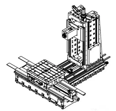 與立式加工中心相比較,臥式加工中心結(jié)構(gòu)復(fù)雜,占地面積大,價格也較高,而且臥式加工中心在加工時不便觀察,零件裝夾和測量時不方便,但加工時排屑容易,對加工有利。 1、固定立柱型 1)工作臺十字運動,工作臺作X、Z向運動,主軸箱作Y向運動,主軸箱在立柱上有正掛、側(cè)掛兩種形式。適用于中型復(fù)雜零件的鏜、銑等多工序加工。 2)主軸箱十字運動,主軸箱作X、Z向運動,工作臺作Y向運動。適用于中小型零件的鏜、銑等多工序加工。 3)主軸箱側(cè)掛與立柱,主軸箱作Y、Z向運動,這種布局形式與刨臺型臥式銑鏜床類似,工作臺作X向運動。適用于中型零件鏜、銑等多工序加工。  2、移動立柱型
