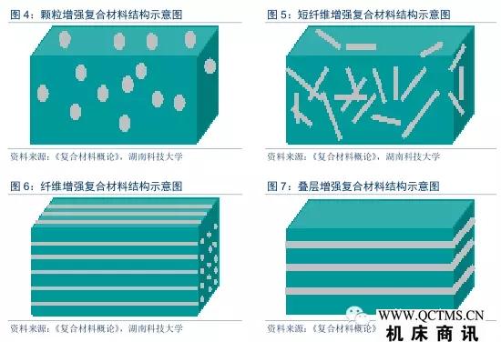 2)按增強(qiáng)材料形態(tài),復(fù)合材料可分為纖維增強(qiáng)、顆粒增強(qiáng)、短纖維增強(qiáng)、片狀增強(qiáng)等,如納米碳管、碳纖維復(fù)合材料等;