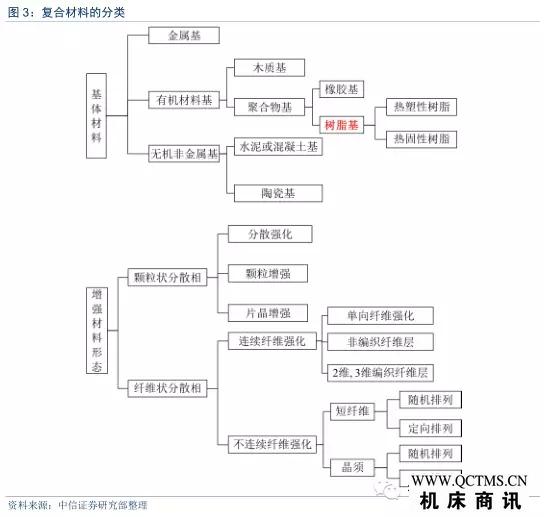 1)按基體材料類別,復(fù)合材料可分為金屬基、有機(jī)非金屬基與無機(jī)非金屬基,如樹脂基、鋁基、鈦基復(fù)合材料等;