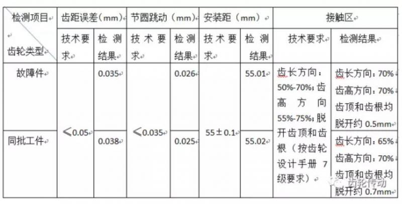 經(jīng)過對故障件和同批次工件的齒距誤差檢測,其檢測結(jié)果如下表: