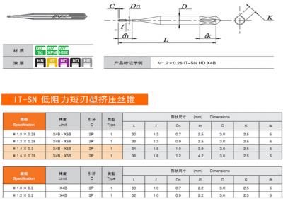 低阻力短刃型擠壓絲錐