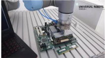 為了滿足企業(yè)對(duì)柔性裝配的基本需求,優(yōu)傲機(jī)器人(UR)(AHTE 2017展位號(hào):E3-B12)也推出了“力傳感器+協(xié)作機(jī)器人”的創(chuàng)新性解決方案。在該解決方案中,協(xié)作機(jī)器人相當(dāng)于人的手臂,力傳感器和夾爪則相當(dāng)于人的手指。而配有力傳感器和夾爪的UR機(jī)器人,可通過(guò)觸碰調(diào)整進(jìn)行精準(zhǔn)定位后,使用與人體手指相似的力度成功實(shí)現(xiàn)內(nèi)存條的柔性裝配。即使物料存在大于±0.5mm安裝公差時(shí),優(yōu)傲機(jī)器人的精準(zhǔn)力控方案同樣可以成功組裝,無(wú)需視覺(jué)等定位輔助。