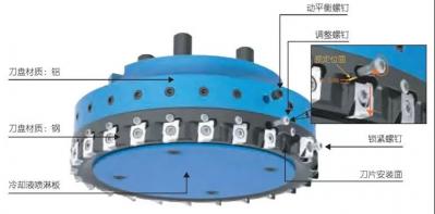 沃爾德的冷卻液噴淋板能使切削液很好地直接輸送到切削區(qū)域,從而改善鋁合金加工的表面質(zhì)量。另外,刀盤底部有連接鋁刀體和鋼刀體的螺釘,請用戶切勿擅動。