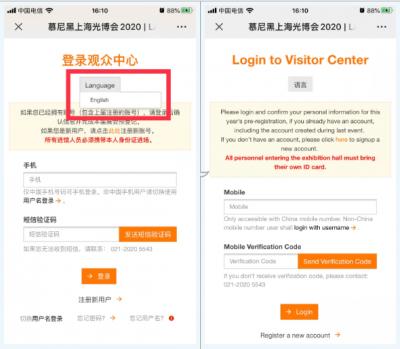 進入預登記首頁,選擇語言界面,點擊“l(fā)anguage”進入英文預登記頁面。