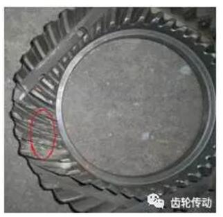 (1)位置:位于齒輪齒根圓角處。(2)形狀:裂紋面在齒的大端曲面與齒根圓面向下成約18-20度的角度,斷裂位置正是輪齒受力最大的位置。